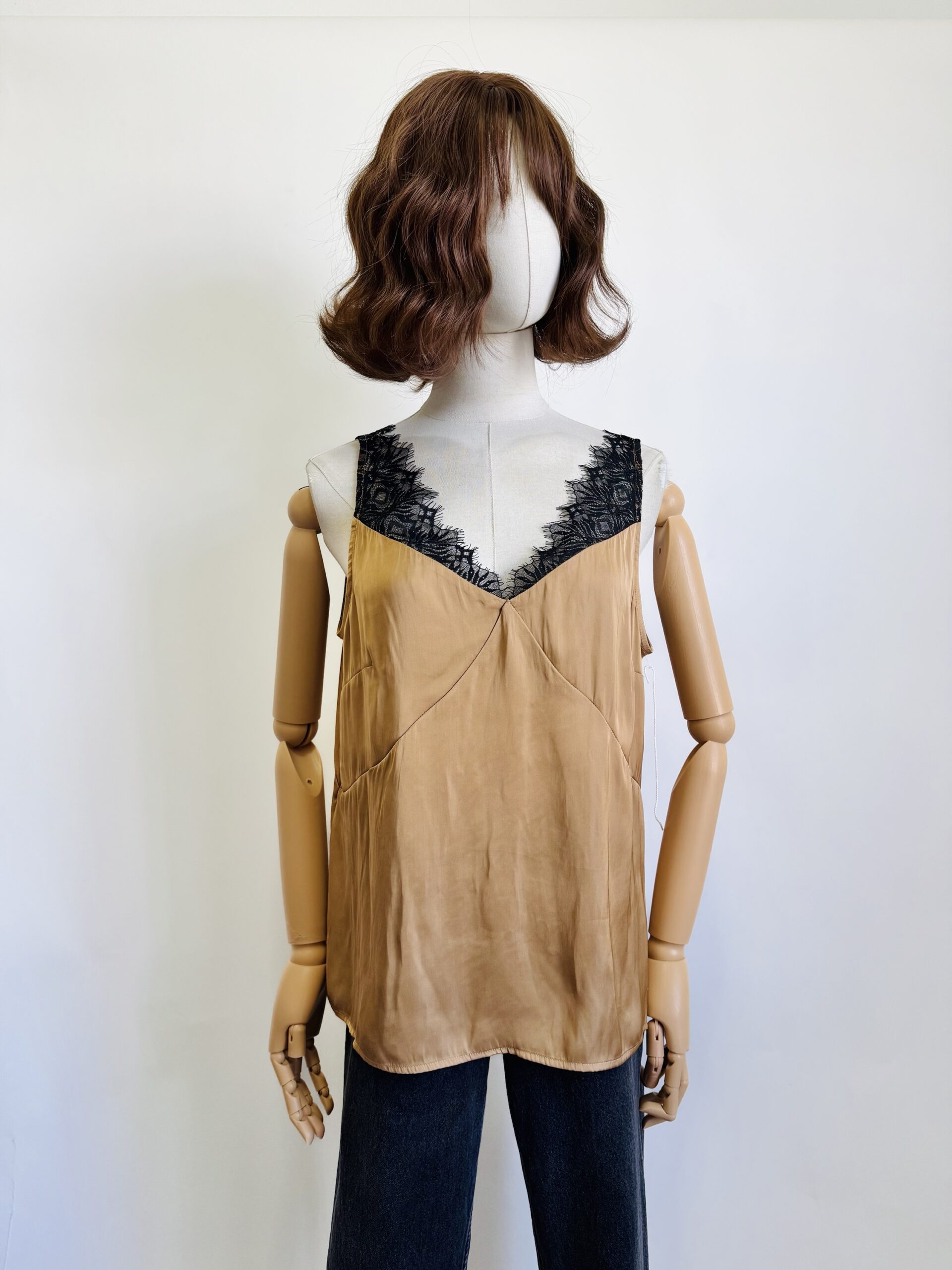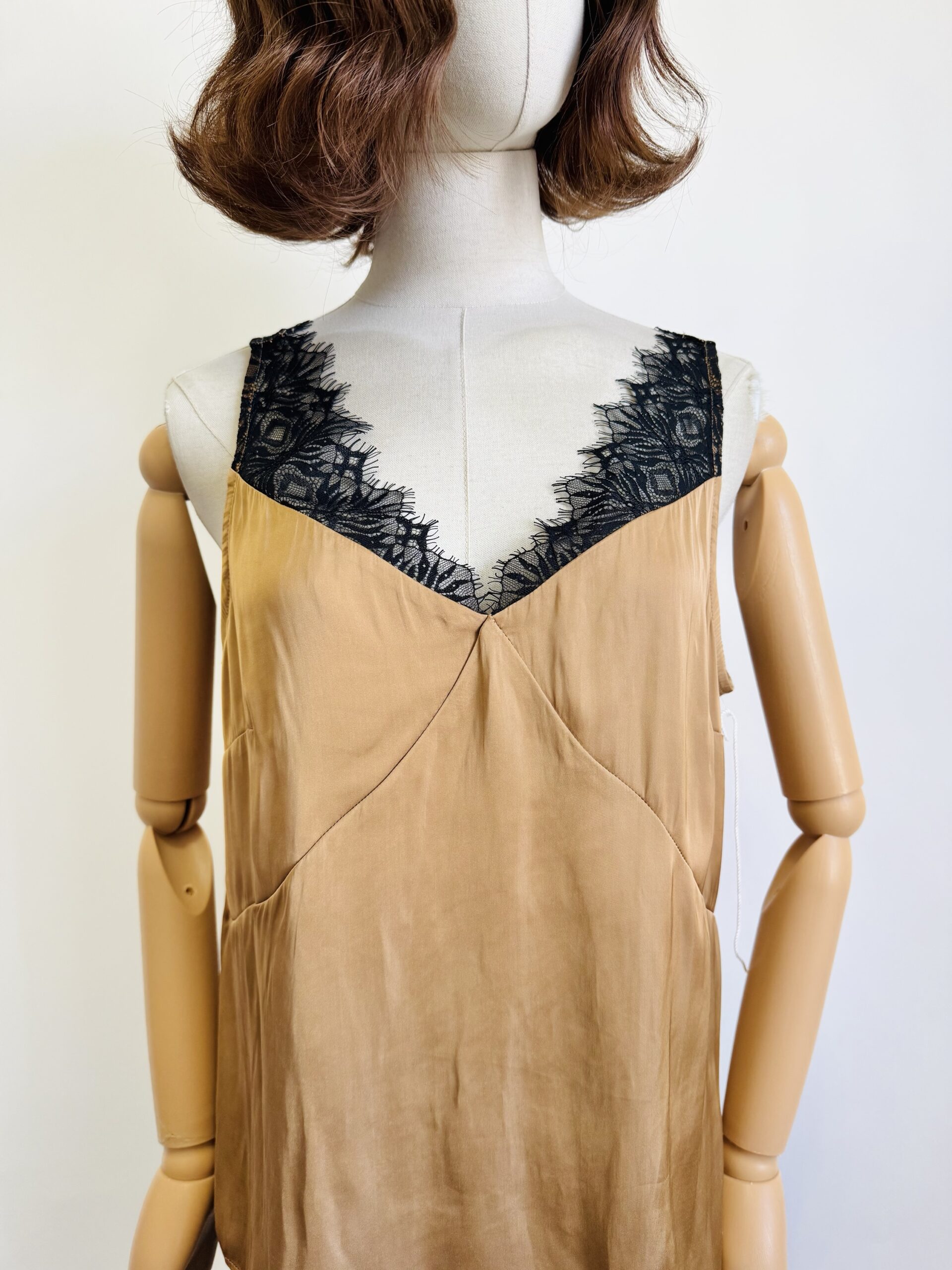 Estilo satinada ligera con encaje en pecho