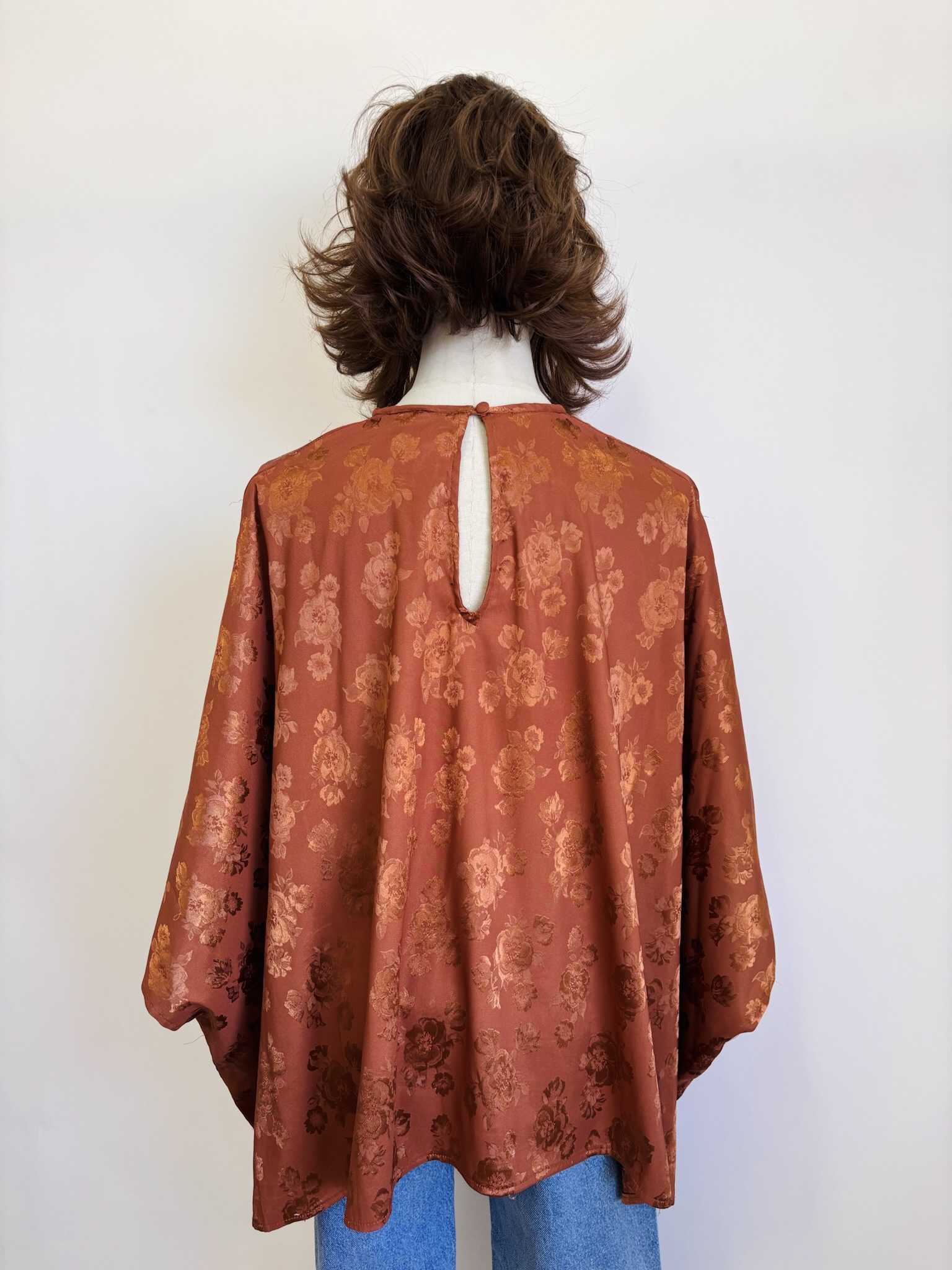 No tiene corte, es cuadrado y tiene los orificios de los brazos, puede ser unitalla