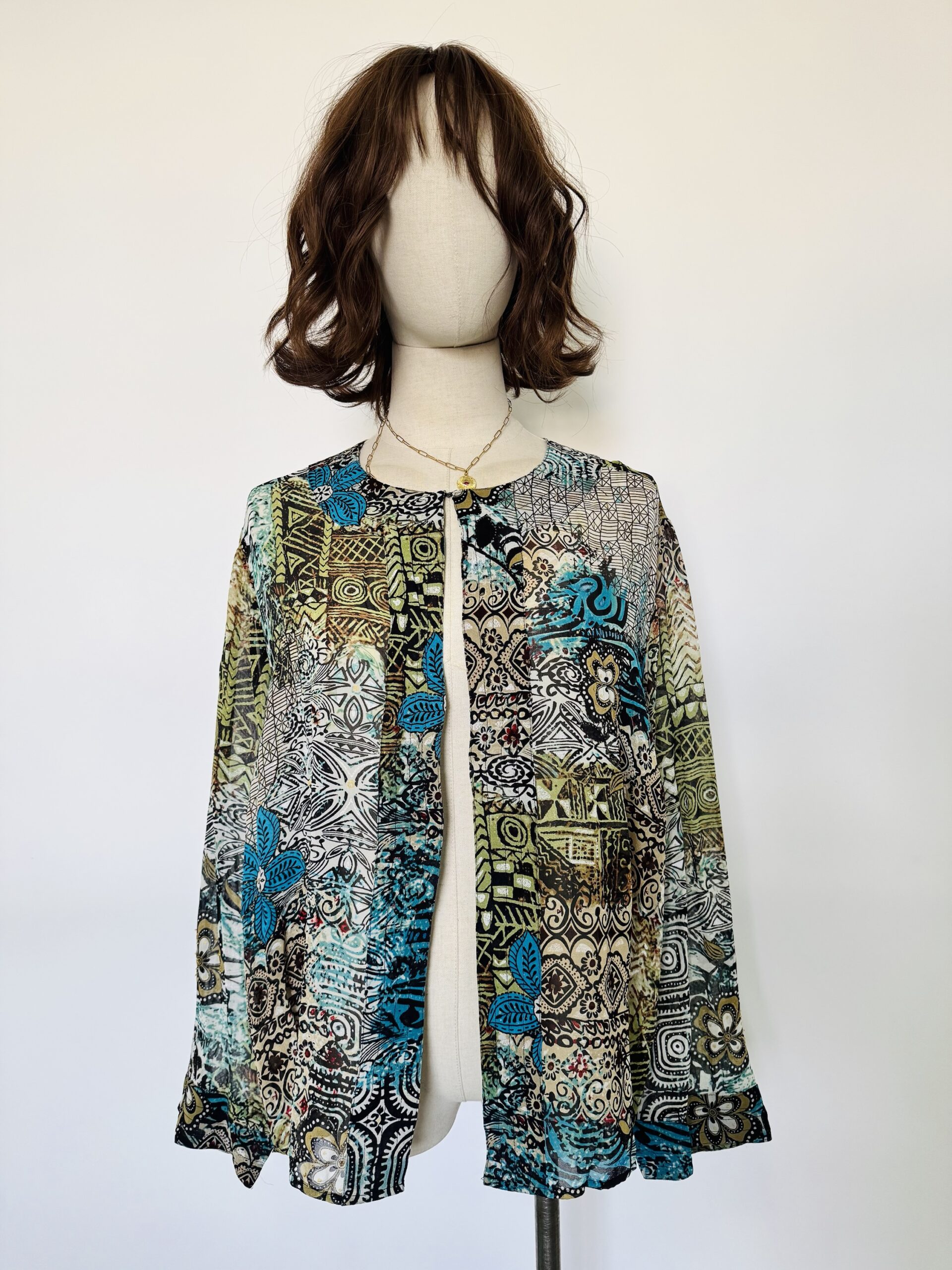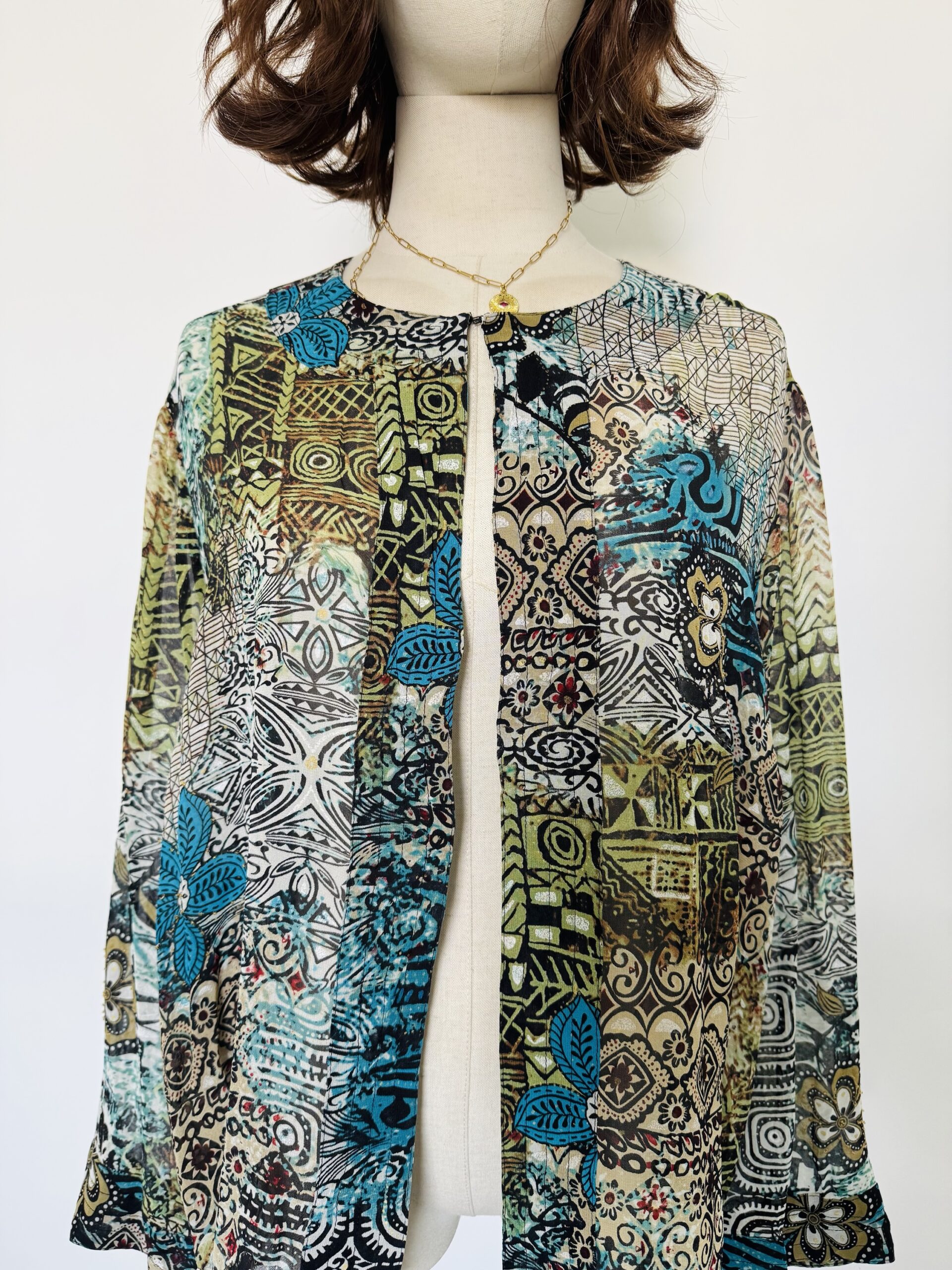 Se abrocha con ganchito en la parte del cuello, con aplicaciones de shakiras