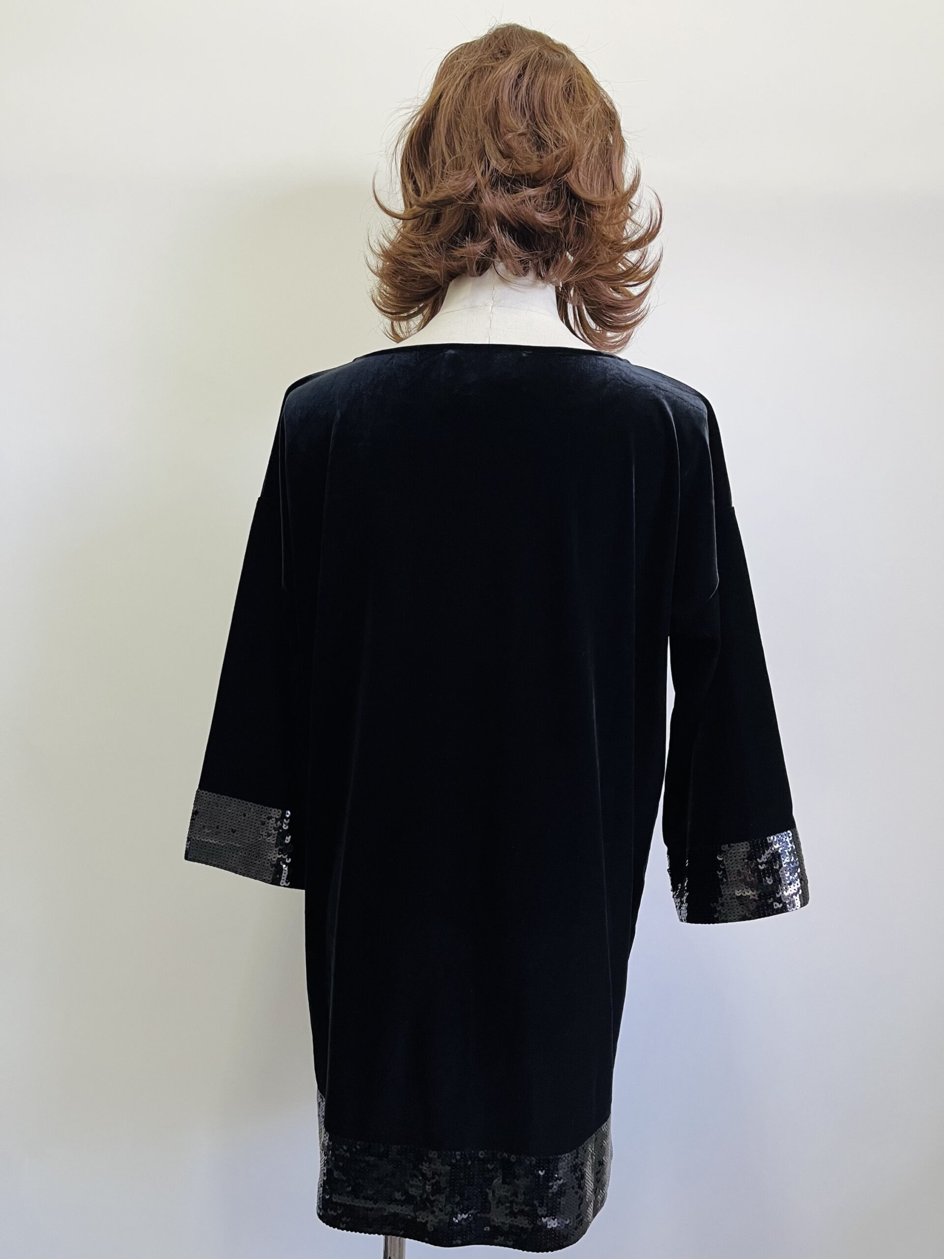 tela gruesa con exterior de terciopelo, manga 3/4, queda a una Talla S o M