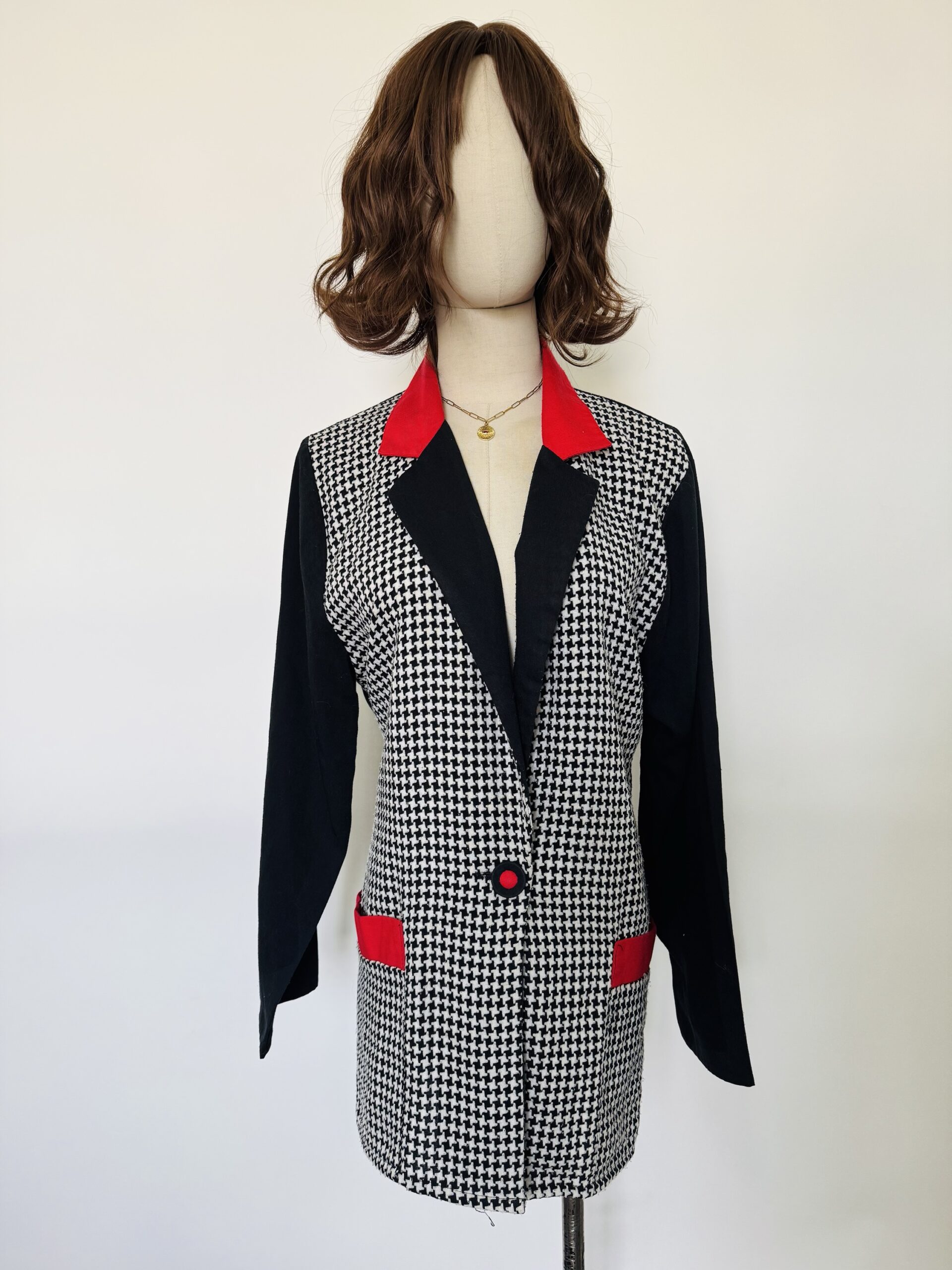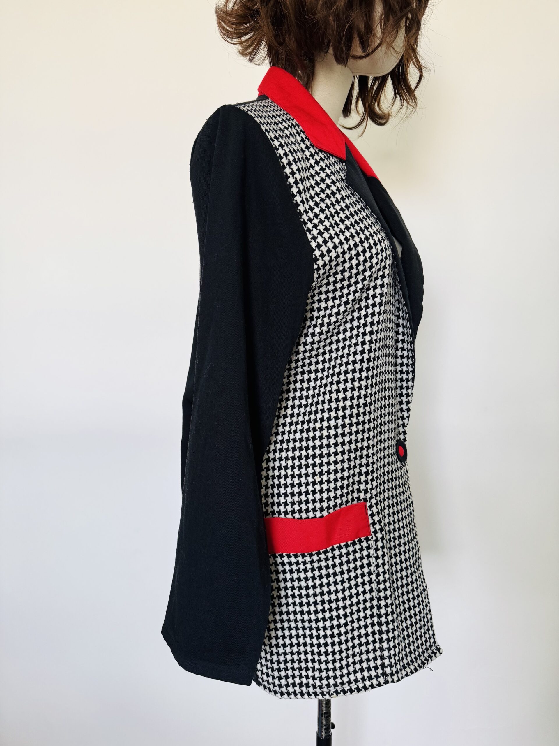Saco a cuadros con detalles rojos Talla SSaco a cuadros con detalles rojos Talla S